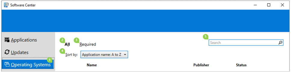 Selecione a guia Sistemas Operacionais (1) para exibir e instalar versões do Windows que seu administrador de TI implanta neste computador.