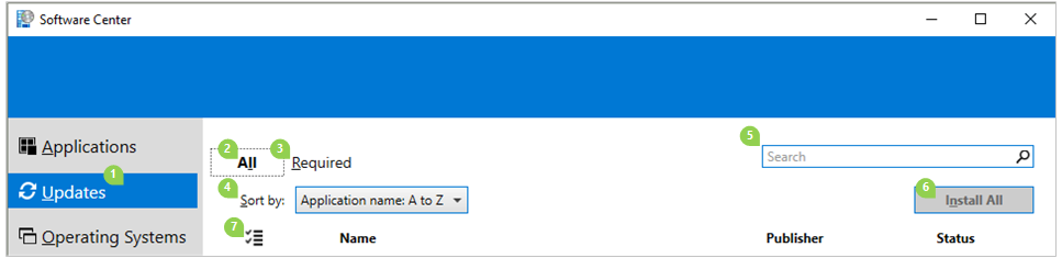 Classificar por (4): reorganizar a lista de atualizações. Por padrão, essa lista classifica pelo nome do aplicativo: A a Z.