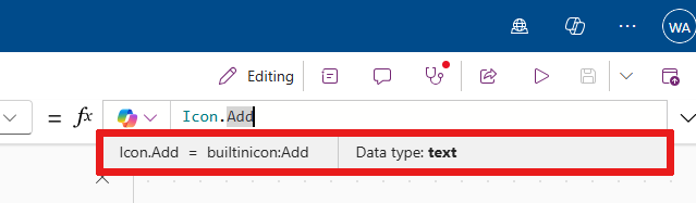Você pode Usar ações em linha no Power Apps Studio no momento em que estiver editando um aplicativo de tela para não precisar sair da exibição atual. As ações em linha ajudam o processo de desenvolvimento a ser mais eficiente.