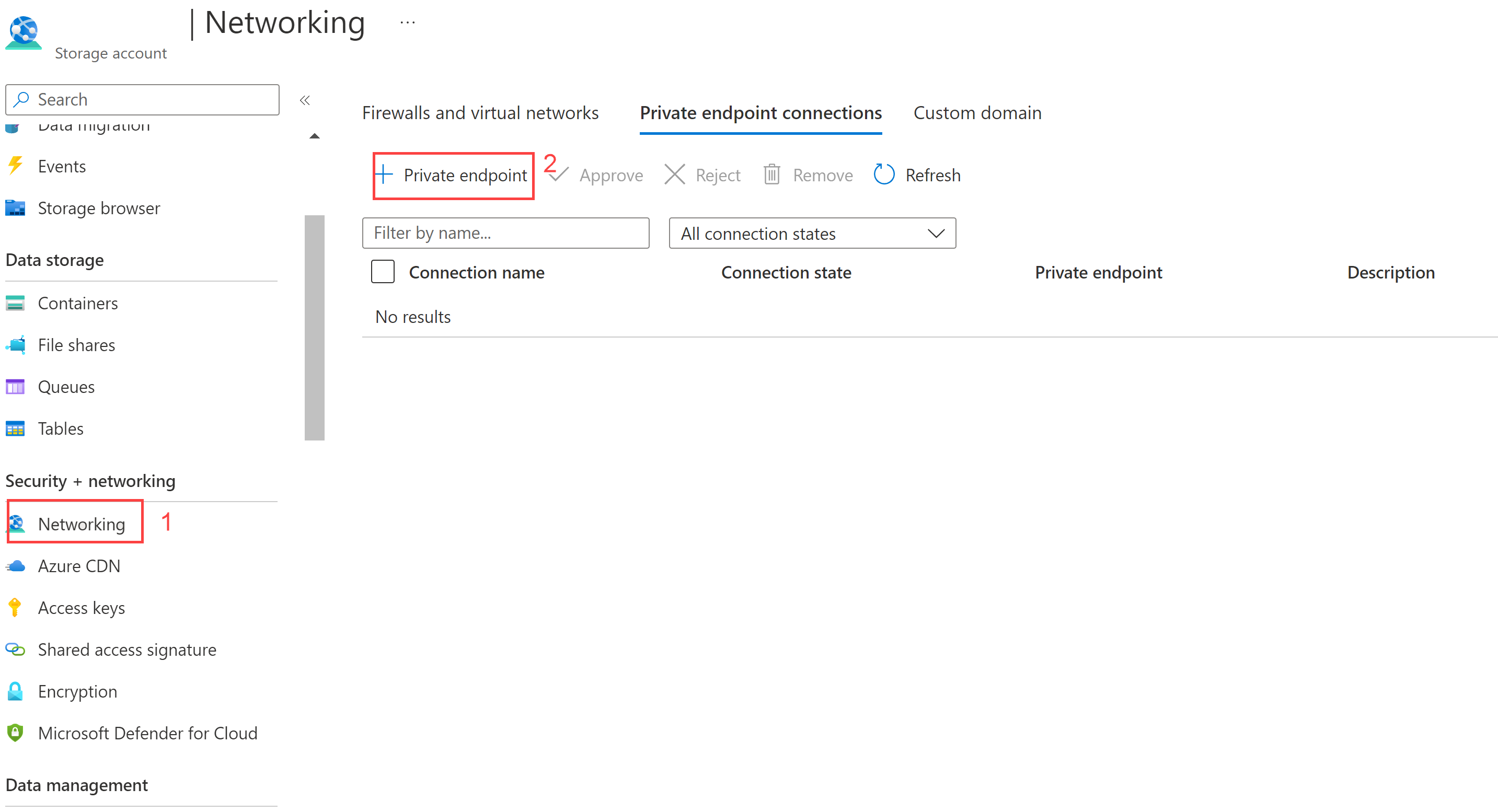 | Use o link privado do Azure | Use o link privado do Azure para acessar o armazenamento do Azure em um ponto de extremidade privado na VNet. Use o fluxo de trabalho de aprovação para aprovar automaticamente ou solicitar manualmente, conforme apropriado. |