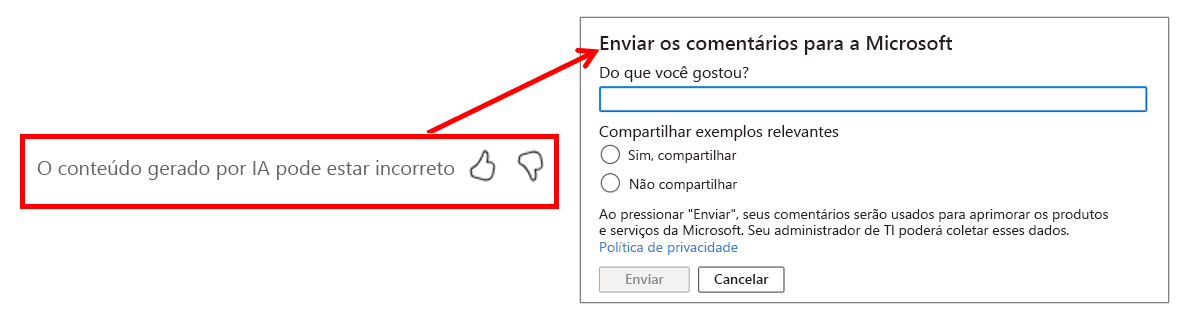 Os usuários podem fornecer comentários sobre o conteúdo gerado.
