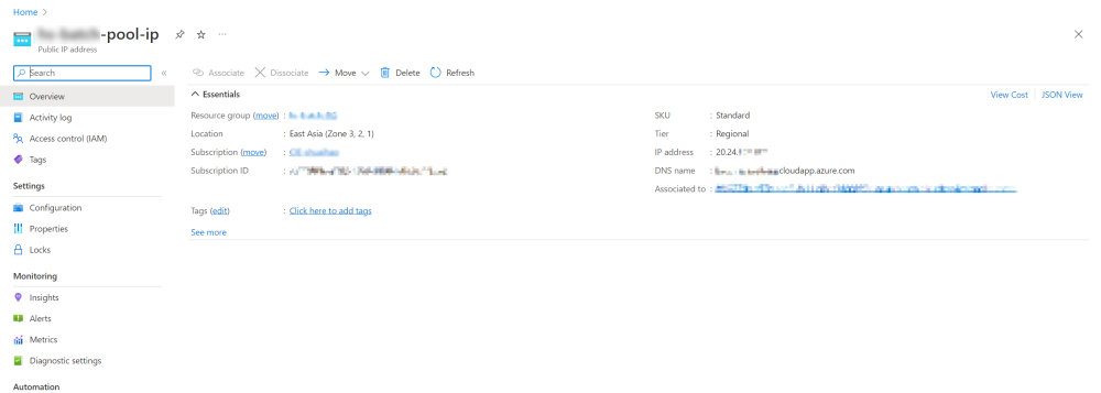 Crie um novo pool do Lote em uma rede virtual com um endereço IP público estático. Para obter mais informações, consulte Criar um pool do Lote com endereços IP públicos especificados.