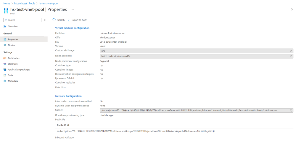 Depois disso, verifique as propriedades do pool do Lote. Eles serão como os da captura de tela a seguir: