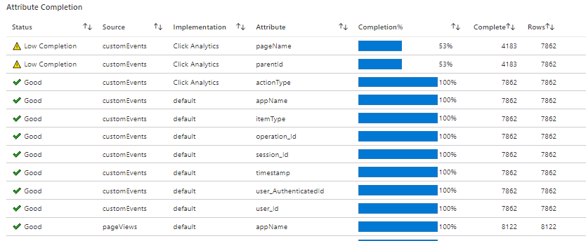 Origem Atributo Descrição eventos personalizados user_AuthenticatedId (Identificação do Utilizador Autenticado) Identificador de usuário autenticado exclusivo eventos personalizados ID da sessão Identificador de sessão exclusivo eventos personalizados nome_do_aplicativo Identificador exclusivo do aplicativo Application Insights eventos personalizados Tipo de item Categoria de registro customEvents eventos personalizados carimbo de data/hora Data/hora do evento eventos personalizados Identificador_de_operacao Correlacione eventos de telemetria eventos personalizados user_Id Identificador de utilizador único eventos personalizados ¹ parentId Nome do recurso eventos personalizados ¹ nome_página Nome da página eventos personalizados ¹ tipoDeAção Categoria do registro do Click Analytics Visualizações de página user_AuthenticatedId (Identificação do Utilizador Autenticado) Identificador de usuário autenticado exclusivo Visualizações de página ID da sessão Identificador de sessão exclusivo Visualizações de página nome_do_aplicativo Identificador exclusivo do aplicativo Application Insights Visualizações de página carimbo de data/hora Data/hora do evento Visualizações de página Identificador_de_operacao Correlacione eventos de telemetria Visualizações de página user_Id Identificador de utilizador único ¹: Para emitir esses atributos, utilize o plug-in Click Analytics Autocollection através do npm.