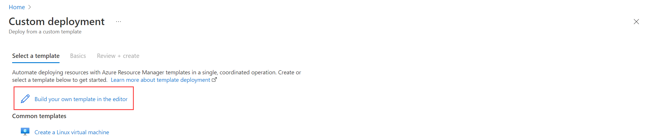 Na caixa de pesquisa do portal, digite modelo e selecione Implantar um modelo personalizado.