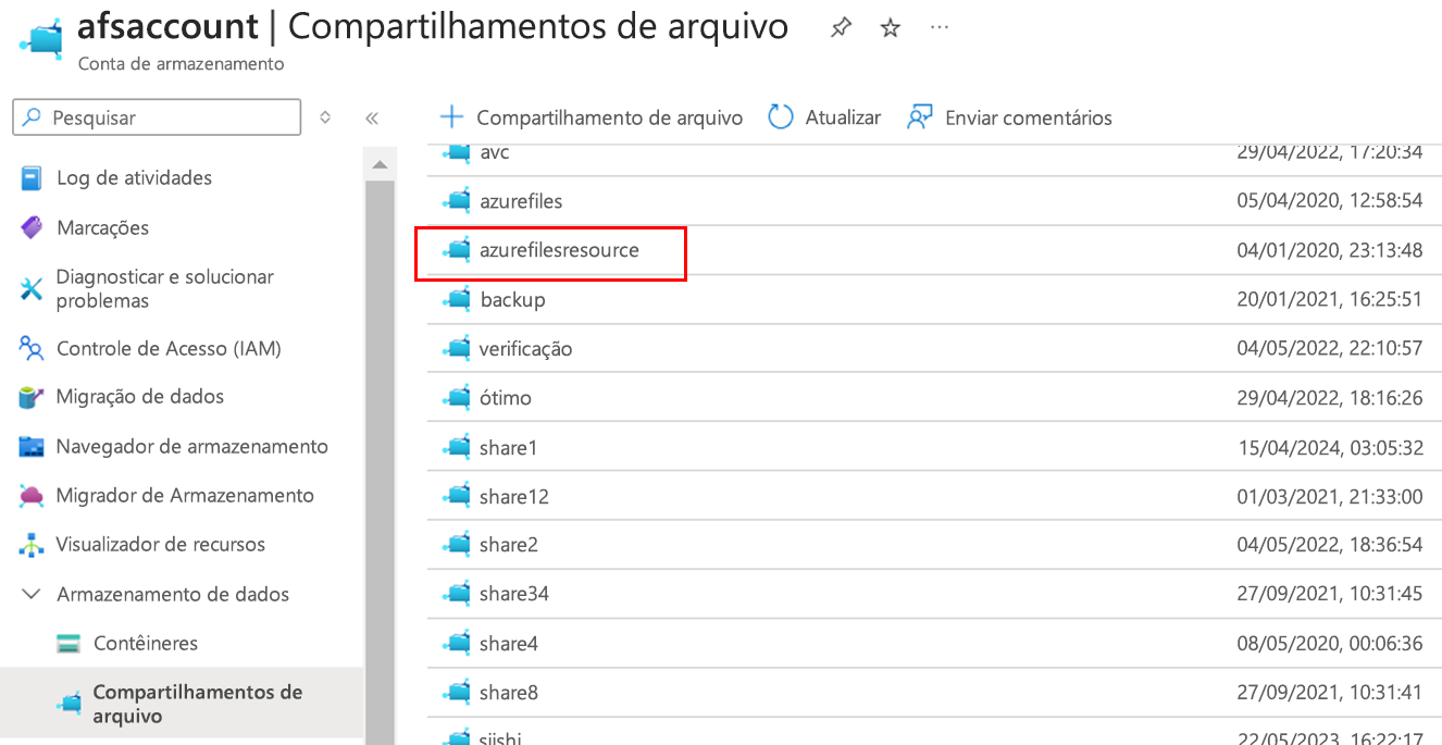 - Verifique se o compartilhamento de arquivos está presente em um dos tipos de conta de armazenamento suportados. Analise a matriz de suporte.