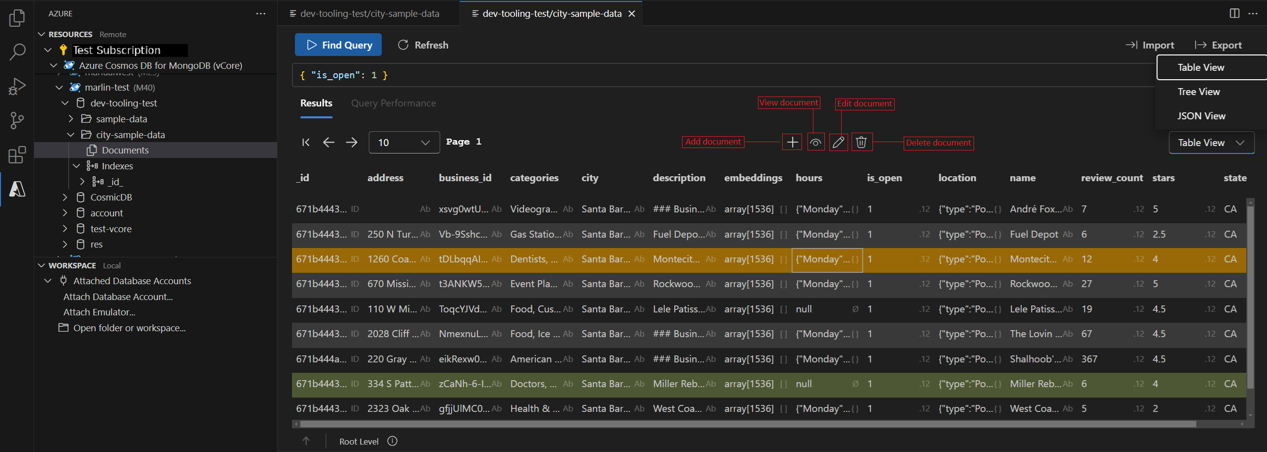 - Acesse as opções de edição de documentos diretamente na "Visualização da coleção". Esses controles estão convenientemente localizados acima da visualização de dados para facilitar o acesso.