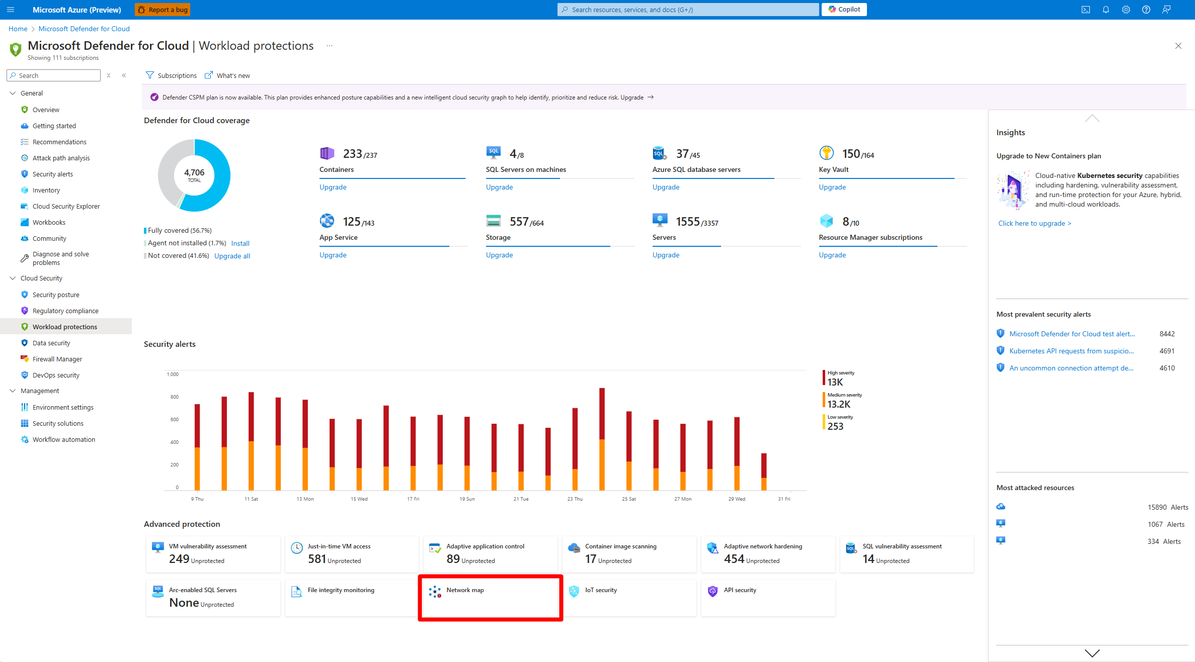 No menu do Defender for Cloud, abra o painel Proteções de carga de trabalho.