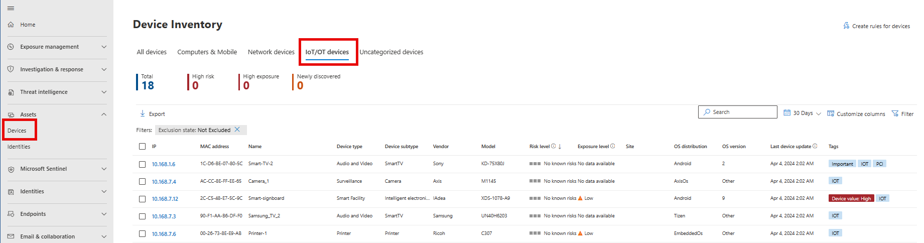 Para obter mais informações, consulte Segurança de IoT empresarial no Microsoft Defender XDR.
