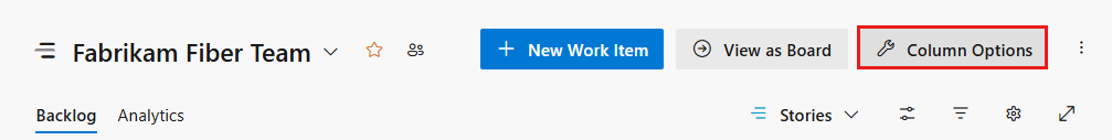 ícone de ações e selecione Opções de coluna. Para obter mais informações, consulte Alterar opções de coluna.