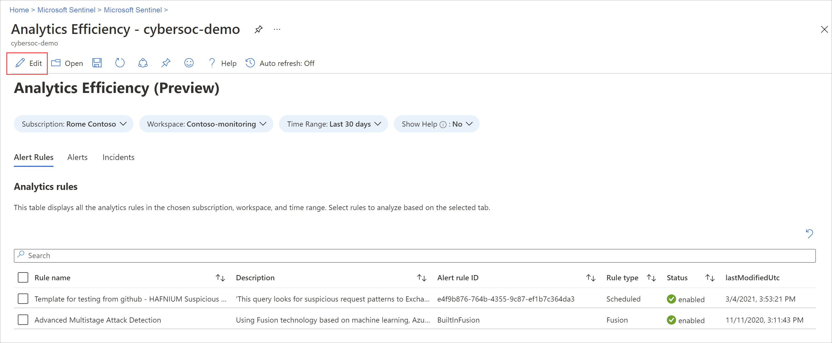 Para editar a pasta de trabalho, selecione Editar e adicione texto, consultas e parâmetros conforme necessário.