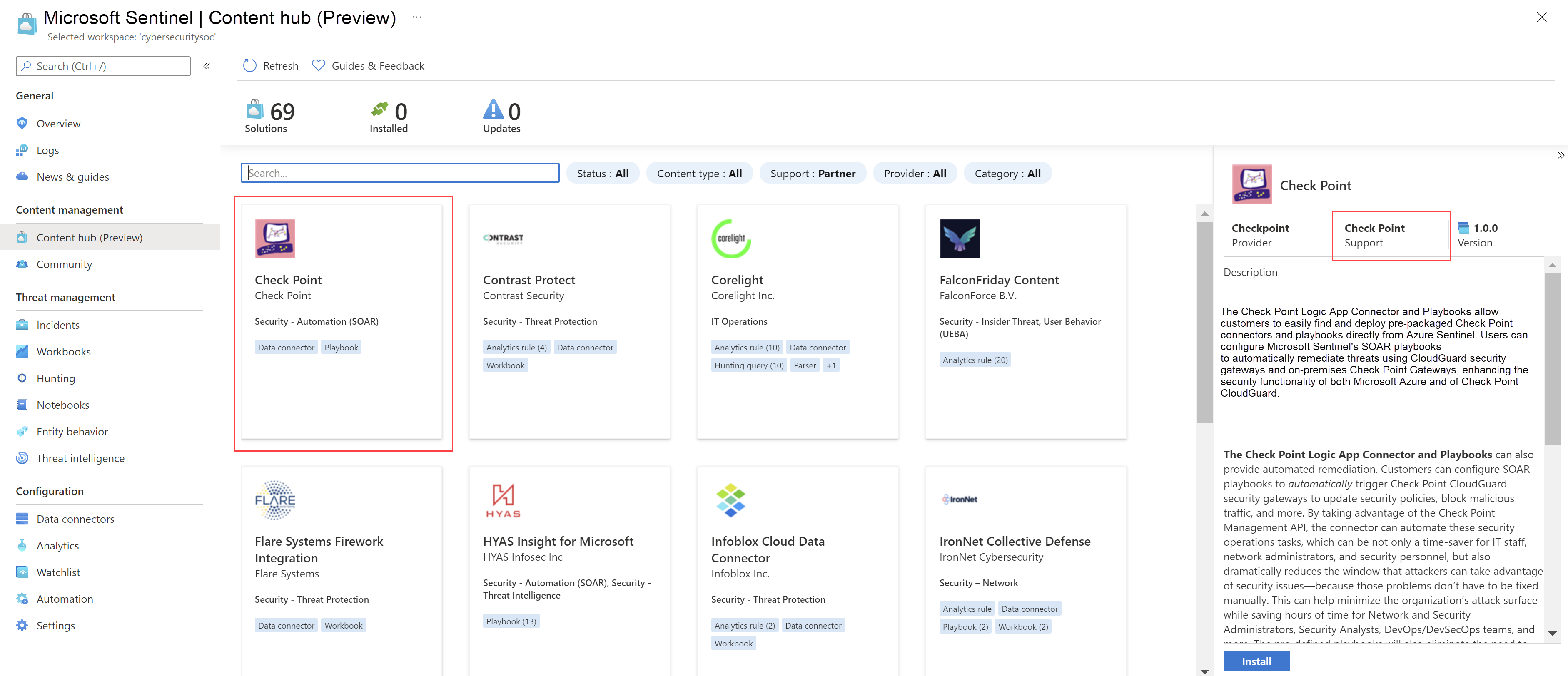 - Encontre soluções específicas de domínio no catálogo do hub de conteúdo do Microsoft Sentinel.
