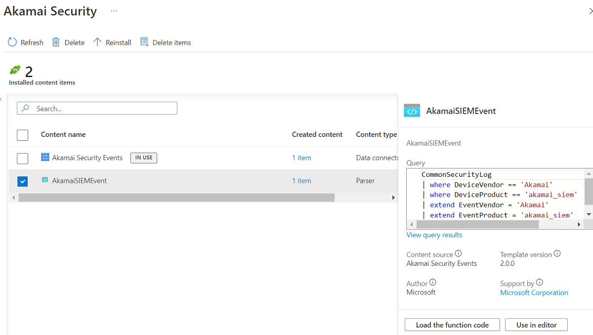 Quando uma solução é instalada, todos os analisadores incluídos são adicionados como funções de espaço de trabalho no Log Analytics.