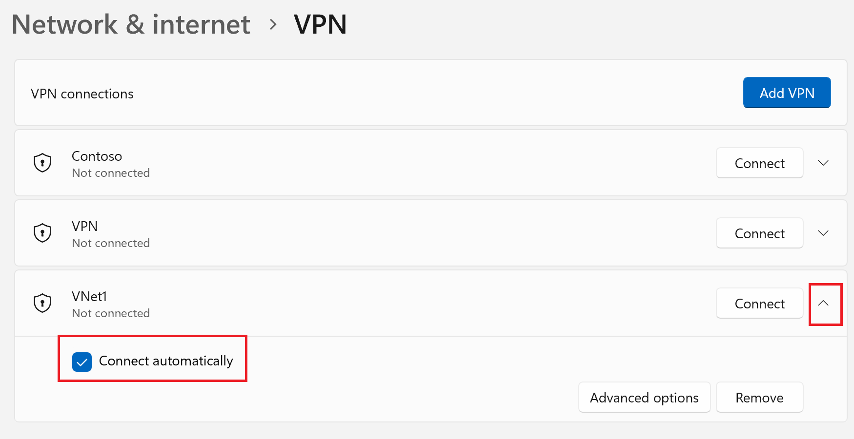 Você pode configurar sua conexão para se conectar automaticamente com o Always-on.