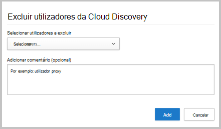 Se tiver utilizadores de sistema, endereços IP ou dispositivos ruidosos, mas desinteressadores, ou entidades que não devem ser apresentadas nos relatórios de TI Sombra, poderá querer excluir os dados dos dados de deteção da cloud analisados. Por exemplo, poderá querer excluir todas as informações provenientes de um anfitrião local.