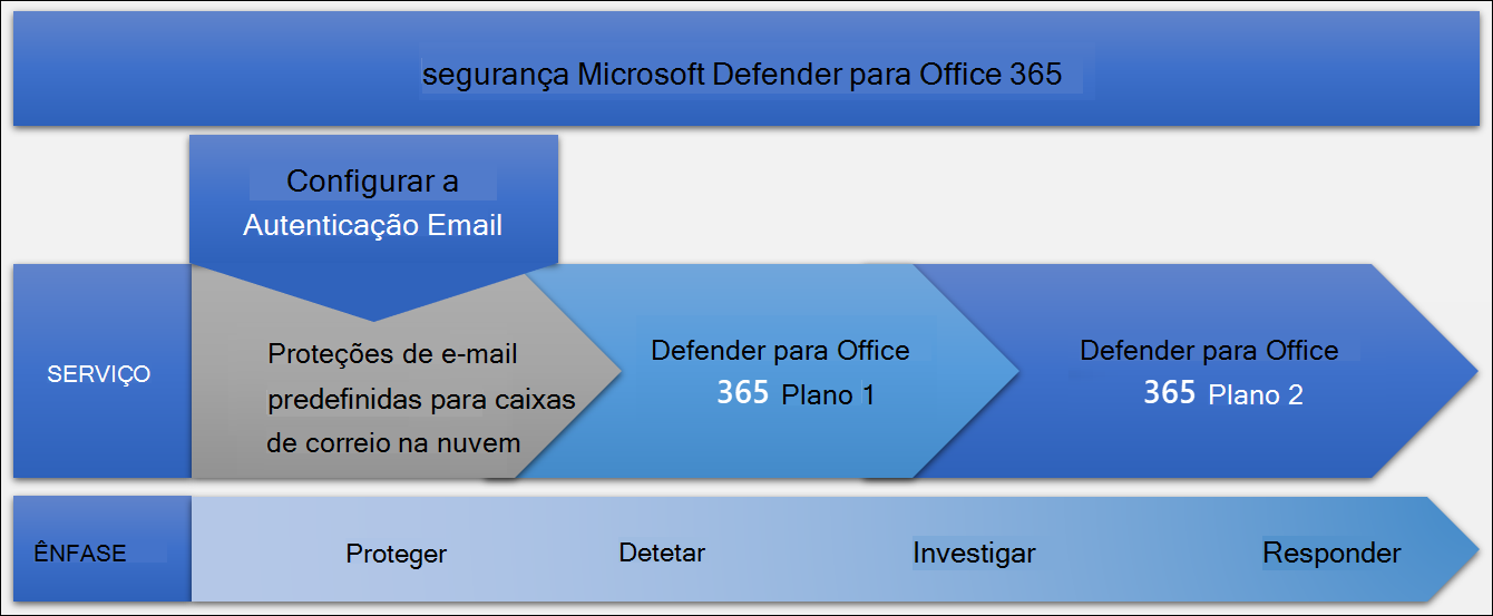 Este artigo explica o escadote de proteção para e-mail e colaboração. O escalão começa com as proteções de e-mail predefinidas para caixas de correio na nuvem e continua a Defender para Office 365 Plano 1 e Defender para Office 365 Plano 2.